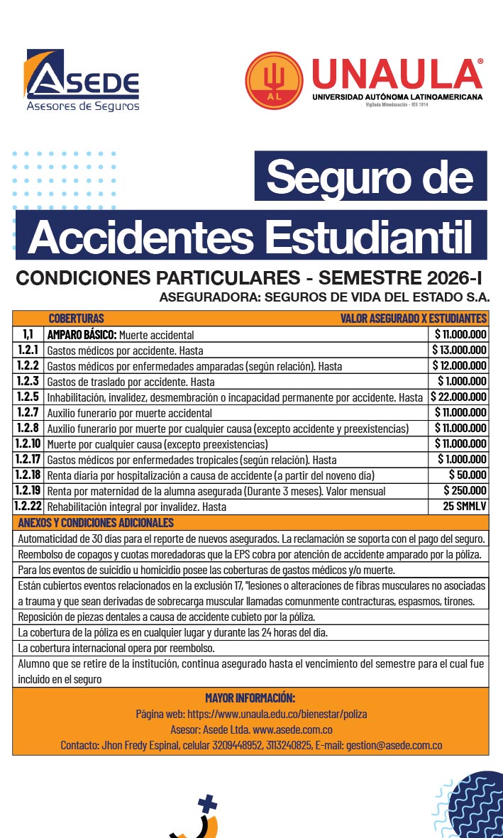 Como estudiante, eres beneficiario de un seguro de accidentes que la Universidad contrata para ti: